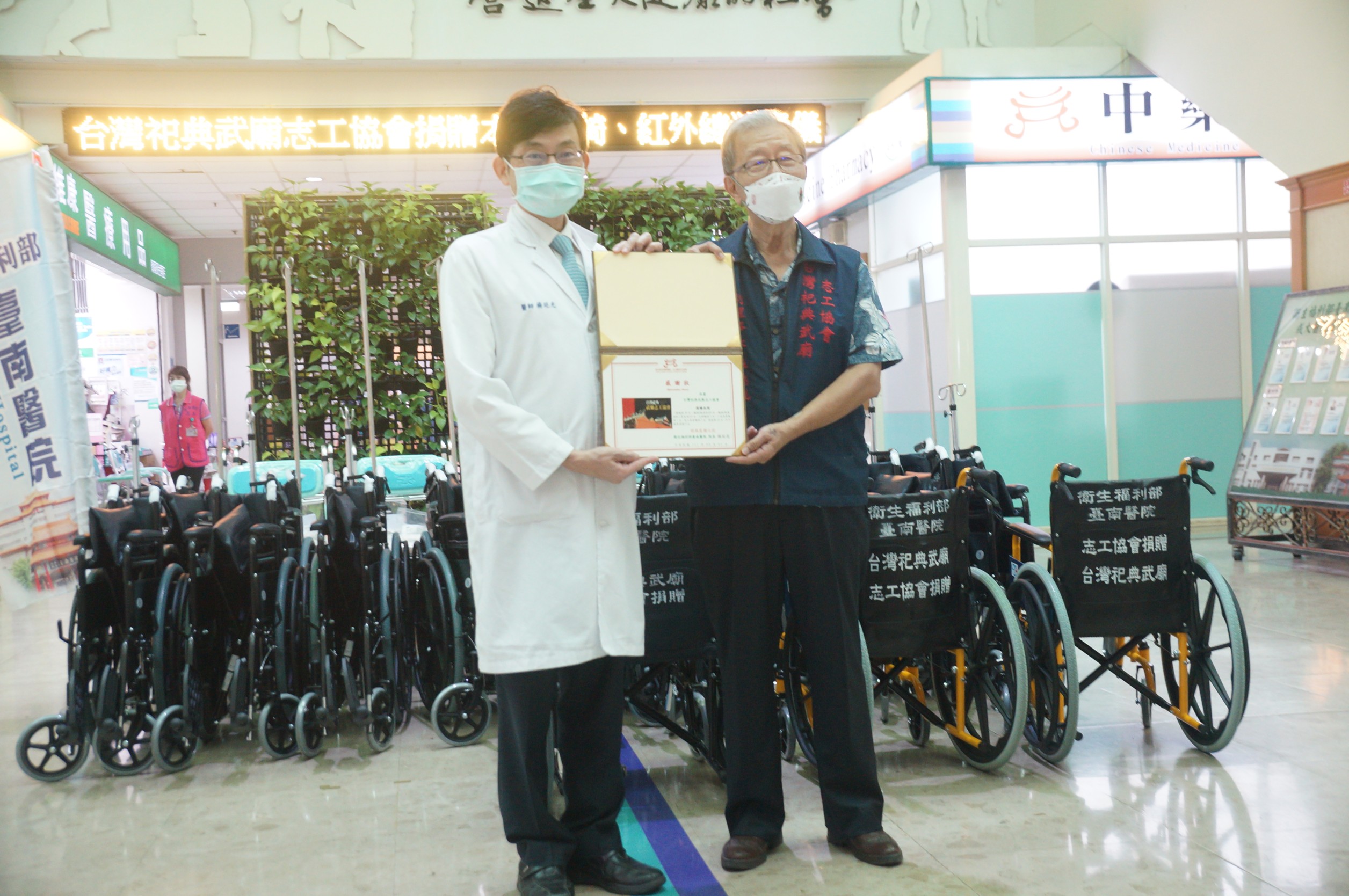 台灣祀典武廟志工協會附屬慈善會行善不停歇,於9月1日捐贈68台愛心輪椅等醫療輔具及紫消燈給衛福部臺南醫院,體貼身心障礙者及行動不便的就醫民眾。臺南醫院楊延光院長代表受贈並回贈感謝狀,希望藉由此善心拋磚引玉,串聯更多正能量。